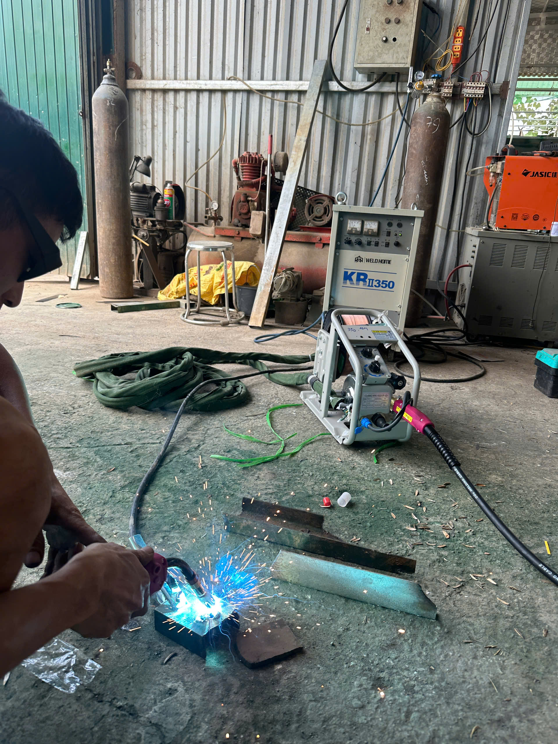 Trong các xưởng cơ khí và gia công kết cấu thép, việc lựa chọn một chiếc máy hàn công suất lớn, hoạt động ổn định là yếu tố rất quan trọng. Máy hàn MIG KR II 350 Nhật bãi là dòng máy hàn công nghiệp nổi tiếng của Nhật Bản, được nhiều thợ hàn tại Việt Nam lựa chọn nhờ độ bền cao, hồ quang ổn định và khả năng làm việc liên tục.